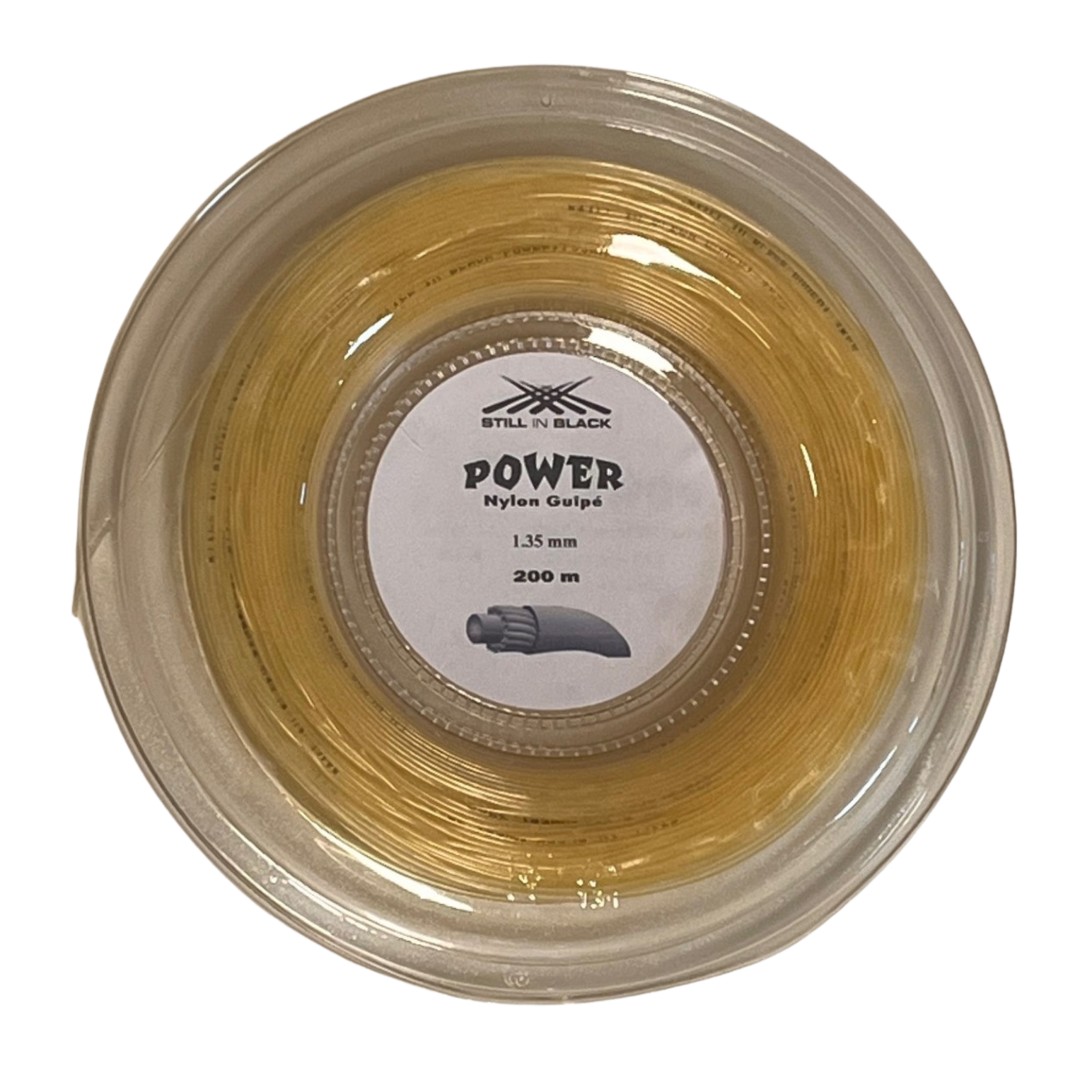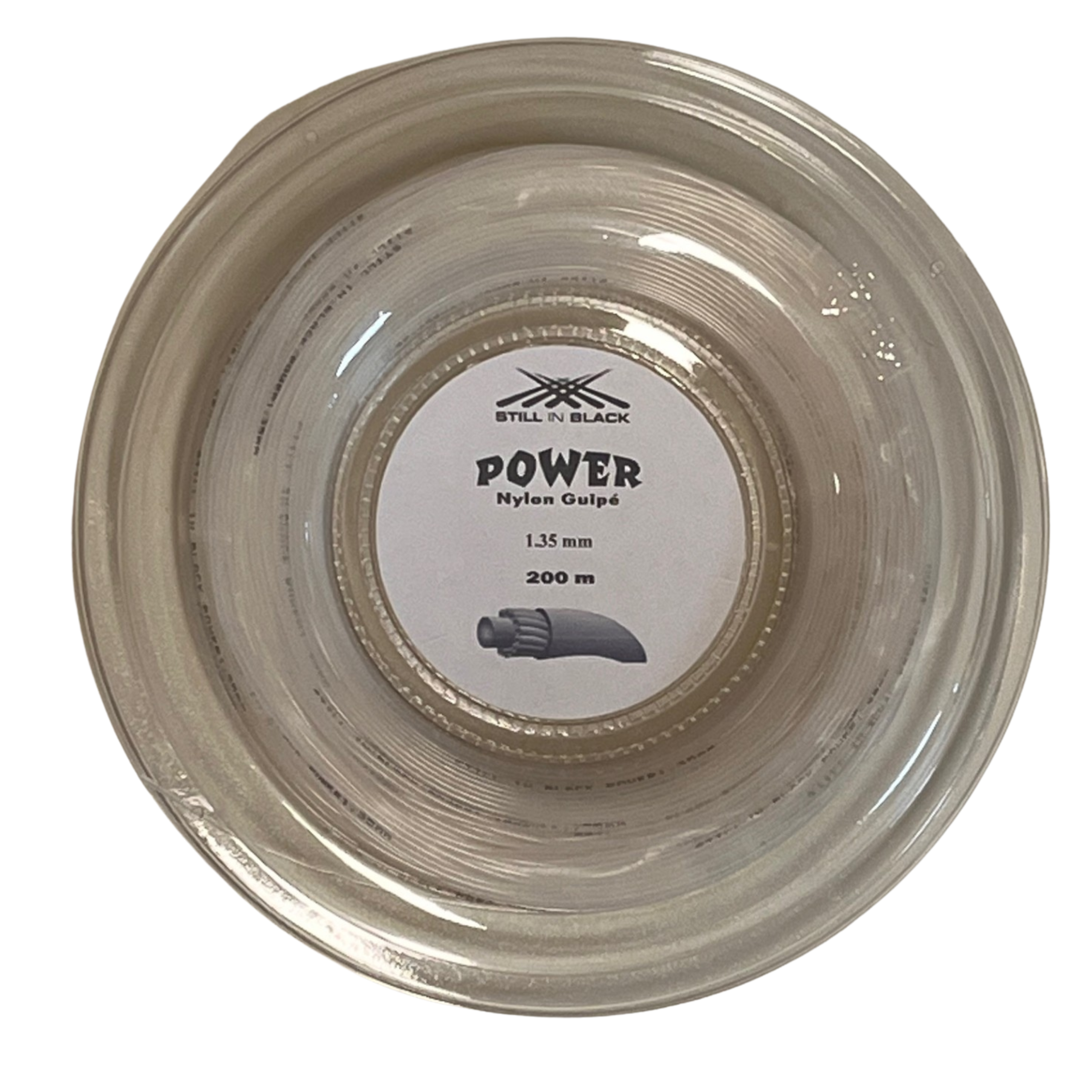 Le Power est un cordage guipé conçu autour d’une âme centrale en nylon. Cette âme est entourée de plusieurs filaments synthétique, formant un guipage qui :